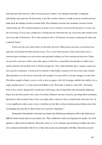 reflection and self-awareness. This is because prayer is often a very intimate ritual that is conducted