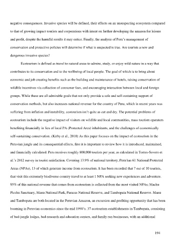 self-sustaining conservation. (Kirby et al., 2010) As this paper focuses on the impact of ecotourism in the