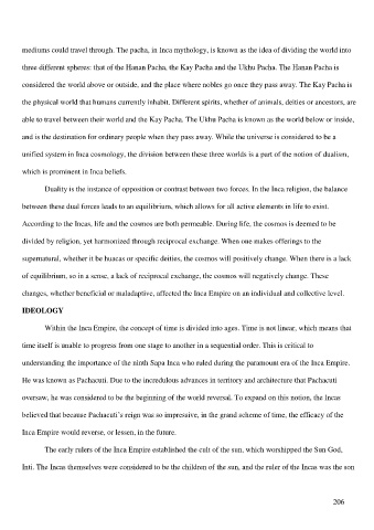 mediums could travel through. The pacha, in Inca mythology, is known as the idea of dividing the world into