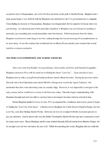accepted a trip to Choquequirao, one of his first key decisions on his path to Machu Picchu. Bingham and a