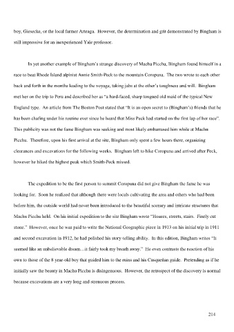 clearances and excavations for the following weeks. Bingham left to hike Coropuna and arrived after Peck,