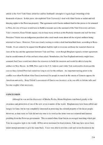 laws of the day and the agreement between Yale and Peru – even though Bingham signed a written agreement