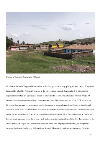 All of the students in Virgen del Carmen live in the Occopata community (partly pictured above). Virgen del
