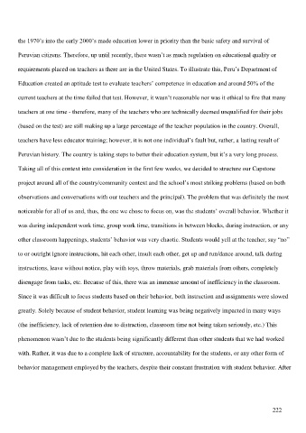 other classroom happenings, students’ behavior was very chaotic. Students would yell at the teacher, say “no”
