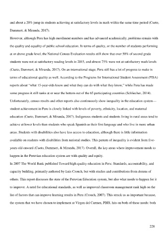 others. This report discusses the state of the Peruvian Education system, but also what needs to happen for it