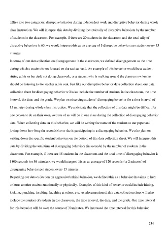 class instruction. We will interpret this data by dividing the total tally of disruptive behaviors by the number