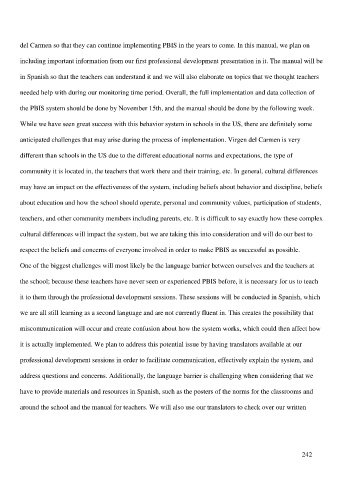 del Carmen so that they can continue implementing PBIS in the years to come. In this manual, we plan on