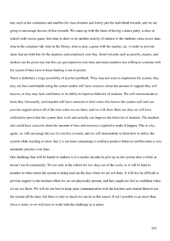 run, such as the containers and marbles for class rewards and lottery jars for individual rewards, and we are
