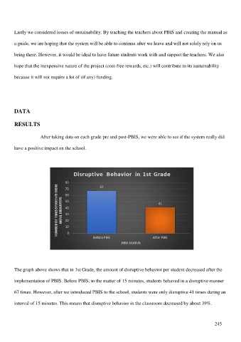 Lastly we considered issues of sustainability. By teaching the teachers about PBIS and creating the manual as