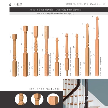 "x43" Starting " 23¼ "x51" Starting " 23½ 3½"x51" Second Floor 19" 3½"x51" Intermediate Landing "x43" Starting 13" 3½"x41" Volute Newel with adjustable dowel 20" "x48" Starting 32" 3½"x60" Gooseneck Landing Newel 3½"x72" Landing Newel