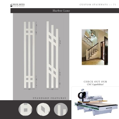 HOLMES CUS T O M S T AIR WAY S << 71 Harbor Lane " 3½ " 4¾ 41⁄6" 41⁄6" " 3¾ CHECK O U T OUR " 6¼ 4" CNC Capabilities! 6¾ " 6¾ " S T AND ARD FEA TURES