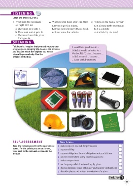 are going on a camping trip. Look at the pictures I think it would be better to ...
