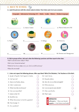 A. Label the pictures with the school subjects below. Then listen and check your answers.