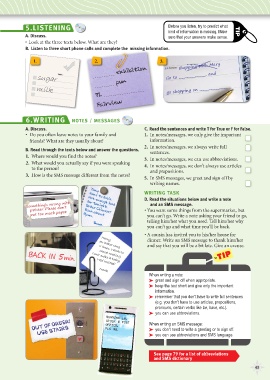 6.WRITING NOTES / MESSAGES C. Read the sentences and write T for True or F for False.