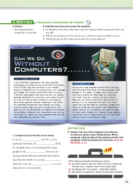 4 . W R I T I N G A PARAGRAPH EXPRESSING AN OPINION