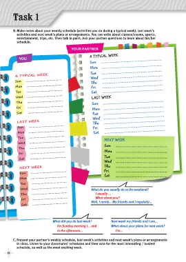 B. Make notes about your weekly schedule (activities you do during a typical week), last week’s