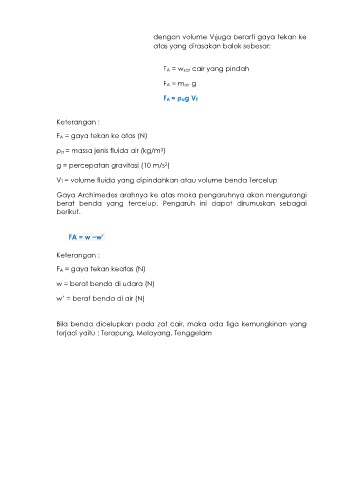 VT = volume fluida yang dipindahkan atau volume benda Tercelup