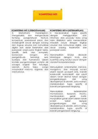 KOMPETENSI INTI 3 (PENGETAHUAN) KOMPETENSI INTI 4 (KETERAMPILAN)