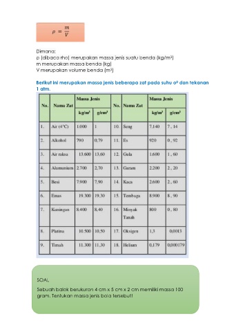 Berikut ini merupakan massa jenis beberapa zat pada suhu o dan tekanan