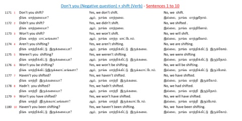 Don't you (Negative question) + shift (Verb) - Sentences 1 to 10