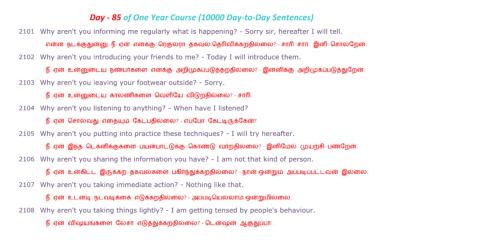 Day - 85 of One Year Course (10000 Day-to-Day Sentences)