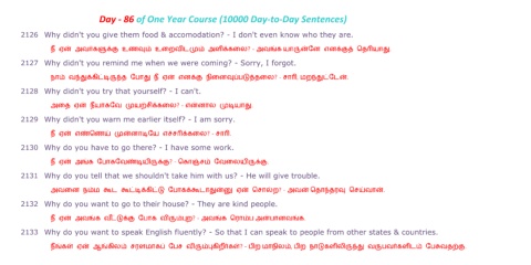 Day - 86 of One Year Course (10000 Day-to-Day Sentences)