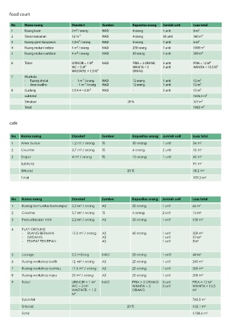 4 Ruang makan indoor 4 m² / orang NAD 250 orang 1 unit 1000 m²