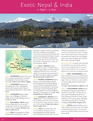 famous Durbar Square and the stupa of to the airport. We fly to Khajuraho, where DAY 11 RANTHAMBORE • JAIPUR (Drive)