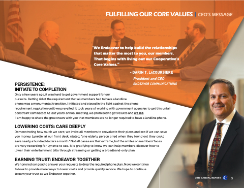 “We Endeavor to help build the relationships that matter the most to you, our members. That begins with living out our Cooperative’s Core Values.”