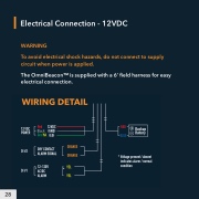 Electrical Connection - 12VDC WARNING To avoid electrical shock hazards, do not connect to supply circuit when power is applied. The OmniBeaconTM is supplied with a 6’ eld harness for easy electrical connection. 12VDC Black (GND) (EG) 28