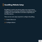 GuardDog is used to view device status, see current alarms, con gure devices, and setup noti cations. GuardDog must be con gured to send noti cations and alarms regarding your OmniSite devices.