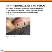 STEP 13 | (CRYSTAL BALL & XR50 ONLY) Reconnect coax cable connection from antenna to top of unit. Finger tighten ONLY. Use of a wrench or other tools to tighten antenna connection will result in damage. Fig.13 Antenna Coax connection 44