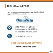 TECHNICAL SUPPORT Have questions or comments about your OmniSite OSMR Upgrade Kit? Please contact: 203 W. Morris Street Indianapolis, IN 46225 support@omnisite.com 317-885-6330 x3 FREE WORLD CLASS SUPPORT! www.OmniSite.com 49