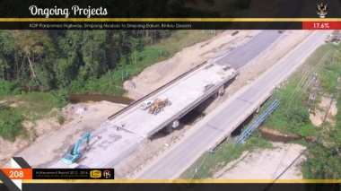 Ongoing Projects KOP Panborneo Highway, Simpang Nyabau to Simpang Bakun, Bintulu Division 17.6% 208 Achievement Report 2012 - 2016 Northern Regional Office Jabatan Kerja Raya Sarawak