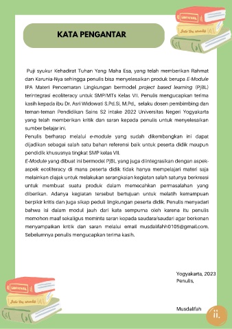 terintegrasi ecoliteracy untuk SMP/MTs Kelas VII. Penulis mengucapkan terima