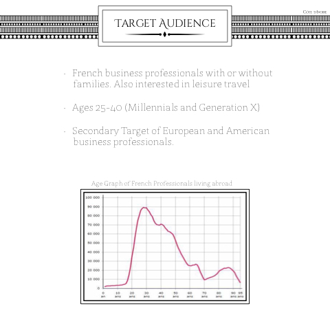 • French business professionals with with or without families Also interested in in leisure travel • Ages 25-40 (Millennials and Generation X)