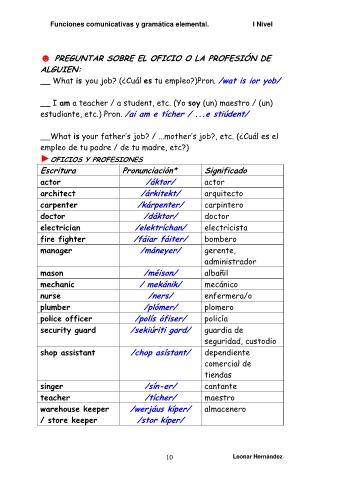 estudiante, etc.) Pron. /ai am e tícher / ...e stiúdent/