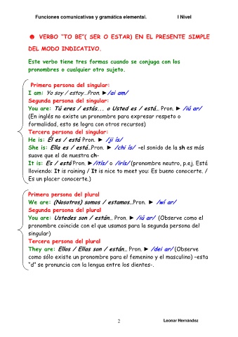 Funciones comunicativas y gramática elemental. I Nivel