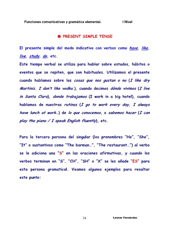 “It” o sustantivos como “The barman…”, “The restaurant…”) al verbo