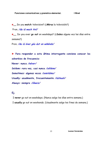 ♣__ Do you ever go out on weekdays? (¿Sales alguna vez los días entre