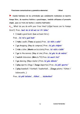 tiempo libre, de nuestros hobbies o pasatiempos, también utilizamos el presente