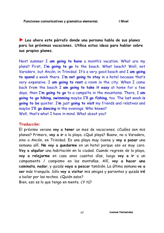 ► Lea ahora este párrafo donde una persona habla de sus planes