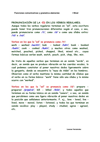 PRONUNCIACIÓN DE LA –ED EN LOS VERBOS REGULARES.