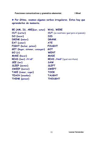 Funciones comunicativas y gramática elemental.                       I Nivel