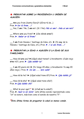 Habana / Santiago de Cuba, etc.) Pron. ► / ai am from.../