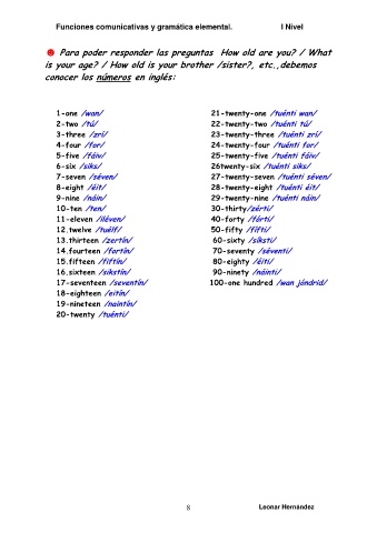 8-eight /éit/ 28-twenty-eight /tuénti éit/