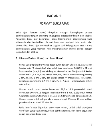 sistematis dan terstruktur. Format buku ajar meliputi tata letak dan