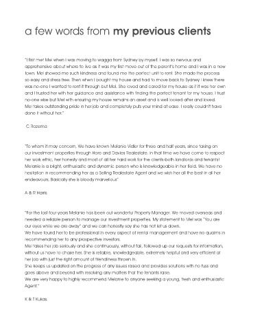 “To whom it may concern, We have known Melanie Vidler for three and half years, since taking on