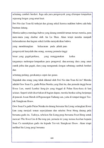 Ouw Soan Cu gadis Pulau Neraka itu datang bersama Sin Liong sedangkan Kwee