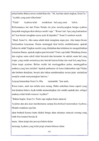 pulau ketika ibunya tewas melahirkan dia. "Ah, kasihan sekali engkau, Soan Cu."